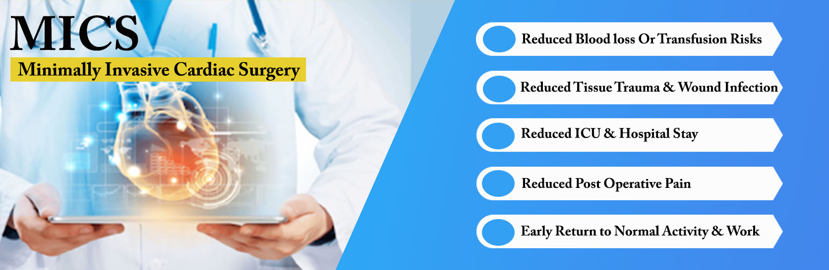 Minimally invasive heart surgery involves making small incisions in the right side or in the left side of the chest to reach the heart between the ribs, rather than cutting through the breastbone (sternum), as is done in open-heart surgery.
